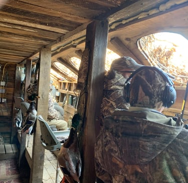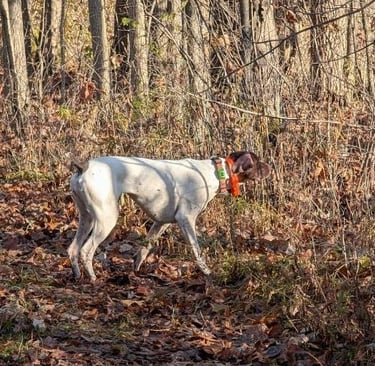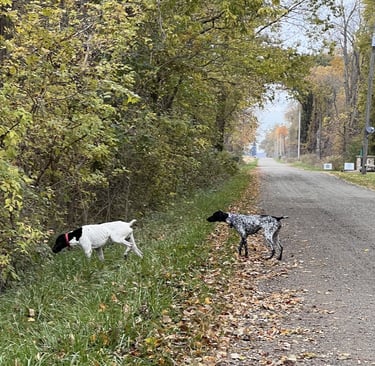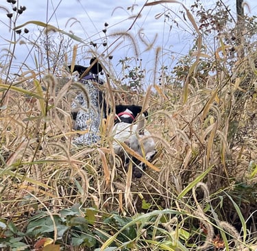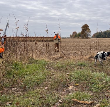 At the lodge we met Brian Waldbieser who runs the club and also our guide for the hunt Gabe Blanton. I asked Gabe about his dog and learned he has a German Wirehaired Pointer named Rudy. Rudy is 11 years old and hunts at a trot - a speed ideal for "seasoned" hunters like Mike and myself. Gabe also brought his young dog Tilly, a German Shorthair who is learning the ropes from Rudy.