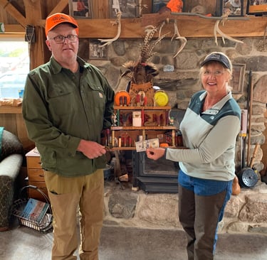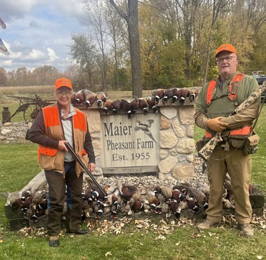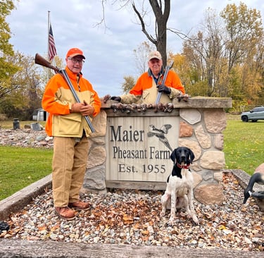Here we are at the finish. Doug and I holding our bonus pheasants. Thanks Randy & Annie!