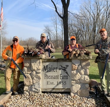 We had nearly a full house of hunters turn out at Maier Pheasant Farm near Bremen, Indiana for our first hunt of the season. I was joined by Mike Tolley, Phil Robinson, Andy Robinson, Kim Polizotto, along with new members Doug Denney and Blaine Guenin. We split into 2 groups on either side of the farm.