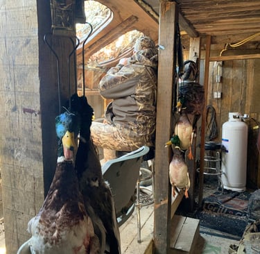 Mike Tolley, Doug Denney, and I headed north on 31 for the last scheduled bird hunt of the season. It was still raining at 5:00 AM when I got a text from Doug. Are we still a go? I had to smile just a little, him being a new member. Of course we are a GO, I replied. It will stop raining in Bremen in 30 minutes! And it did. The front was moving quickly through Indiana with strong winds. Gary had assured me that where we would be hunting is sheltered from the wind. And it was. The ground was hardly even muddy. It was a great hunt! It did get a little warm by our usual standards. I was in shirt sleeves and hunting vest only. By the time we had finished it well into the 60's.